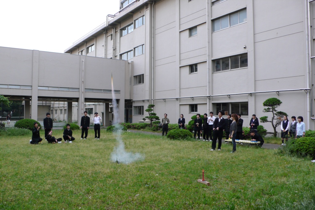 そして、製作したモデルロケットを学校の中庭で打ち上げました。