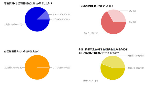 本交流会に対して、アンケートを集計したところ、参加者からは総じて「良かった」という意見が聞かれた。